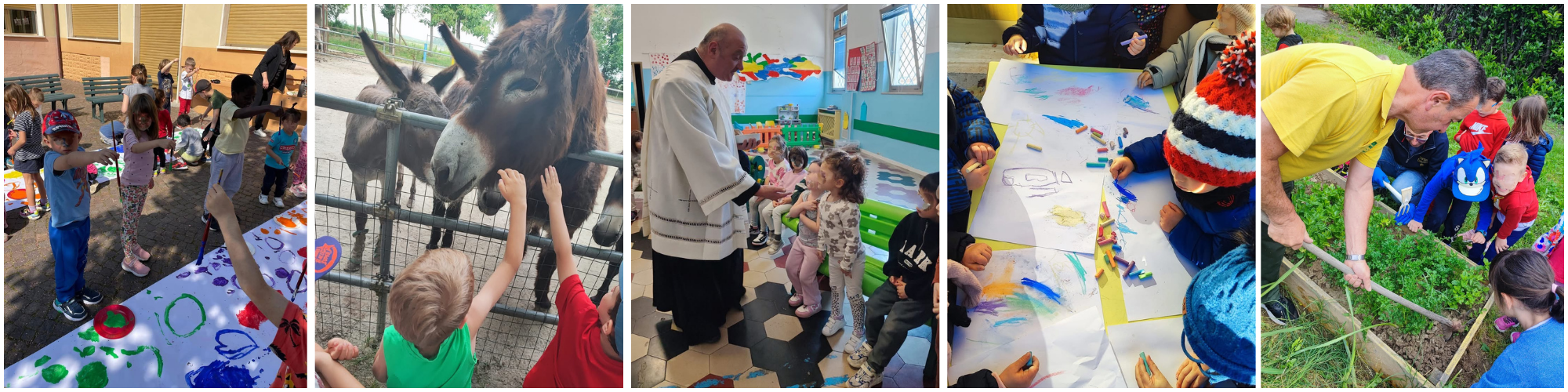 Il nostro piano educativo tiene conto delle indicazioni nazionali sulla fascia 0-6 anni e ha come obiettivo quello di far diventare la nostra scuola una guida verso il futuro e una finestra sul mondo. Gli strumenti? Laboratori creativi, cura del giardino e dell’orto, progetti con realtà del territorio (Comune, Biblioteca, Parrocchia, Teatro, Associazioni), cammino di insegnamento della Religione Cattolica, introduzione alla lingua inglese con insegnante di madrelingua inglese (progetto Mindfulness).